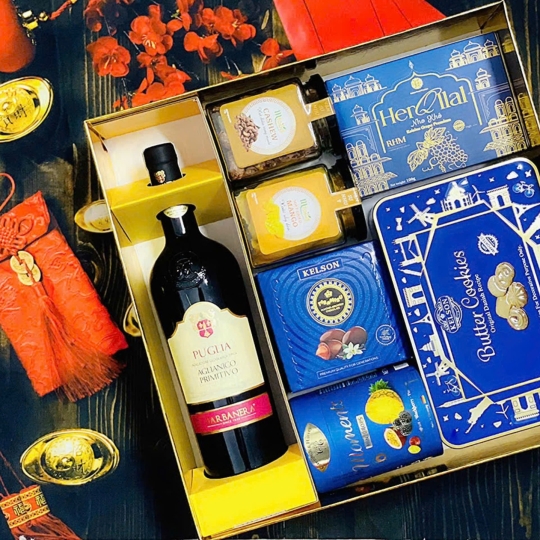 HỘP QUÀ TẾT VANG KÈM BÁNH HẠT